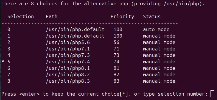 4. To change between PHP versions from the CLI (Note: you will need to configure apache or nginx to use the correct PHP version. This is for CLI only.)