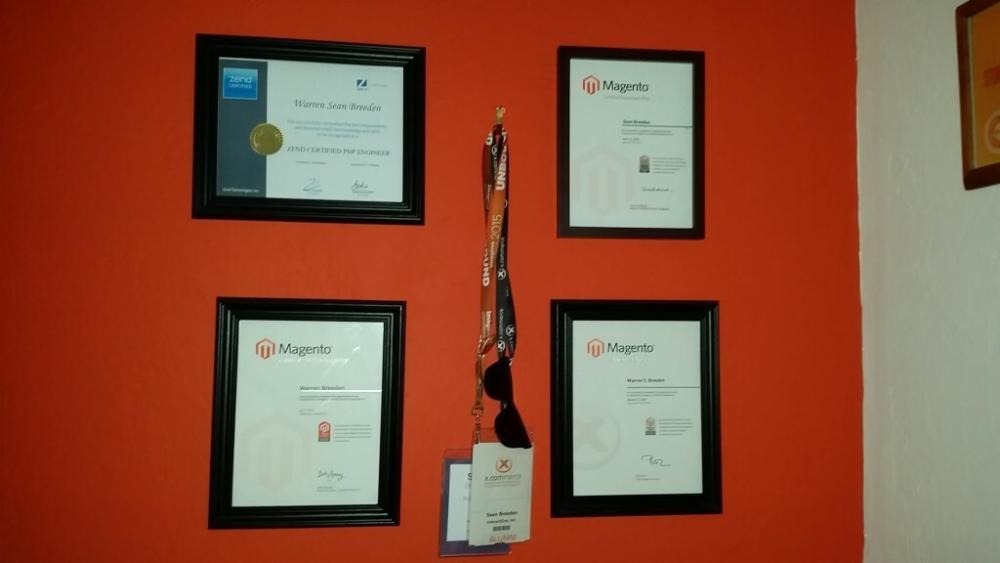 I have a few more that I’ve added since then. Yes, my office wall is orange. I have a few lanyards from Magento Imagine and Magento Innovate along with some MageShades.